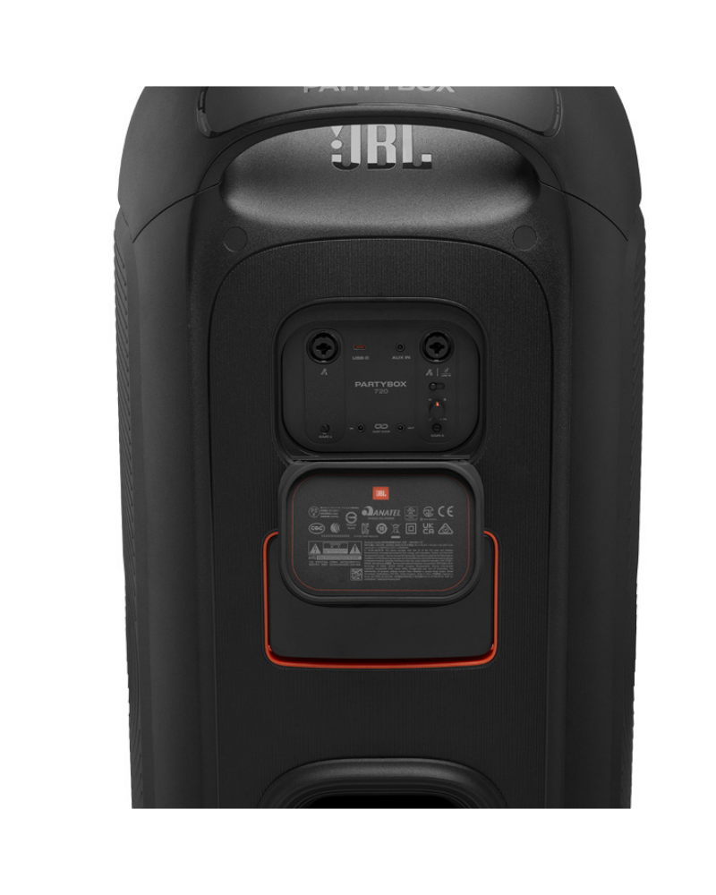 Đây chính là điểm nâng cấp "đáng tiền" nhất trên PartyBox 720. Không giống như PartyBox 710 chỉ hoạt động bằng nguồn điện trực tiếp, PartyBox 720 được trang bị pin rời dung lượng lớn, có thể cung cấp thời gian phát nhạc lên tới 15 giờ liên tục.